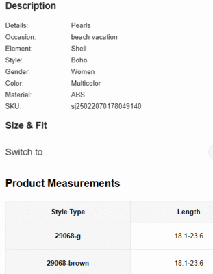 Sizes: XS