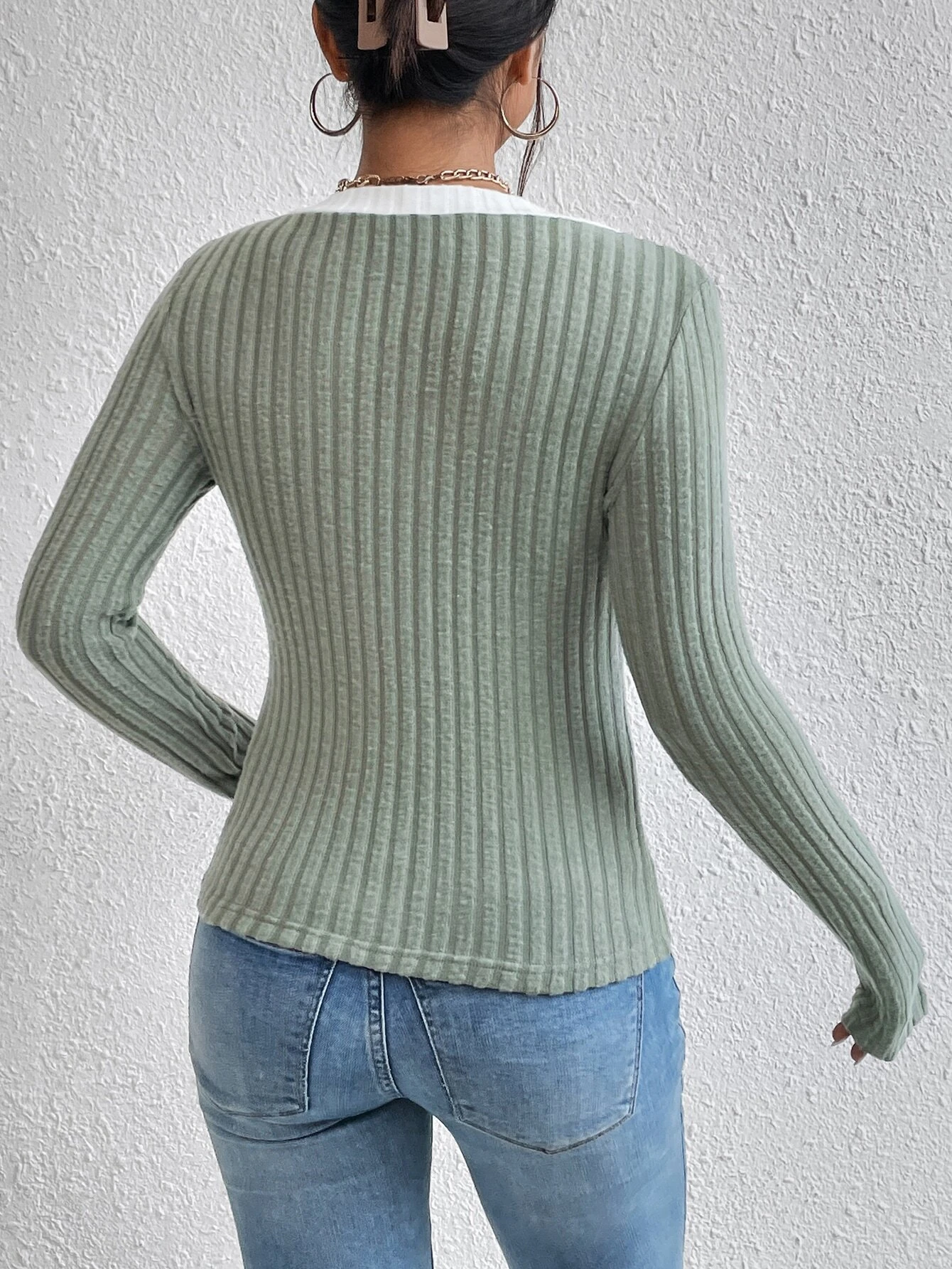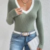 Details: Rib-Knit, Contrast Binding