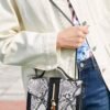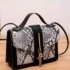 Metal Tassel Decor Snakeskin Print Satchel Bag