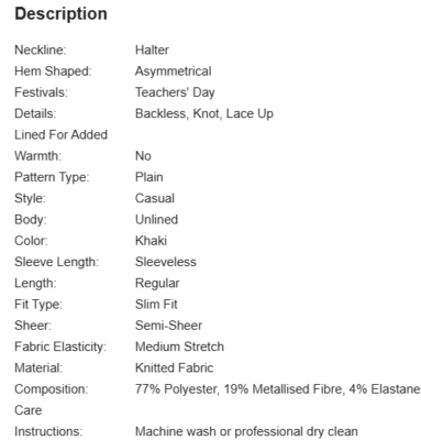 Sizes: XS