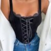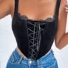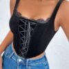 Details:Contrast Lace, Lace Up, Asymmetrical