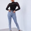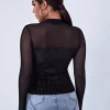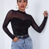 Details: Sheer, Contrast Mesh, Rib-Knit