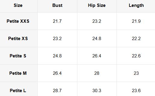 Sizes: XS